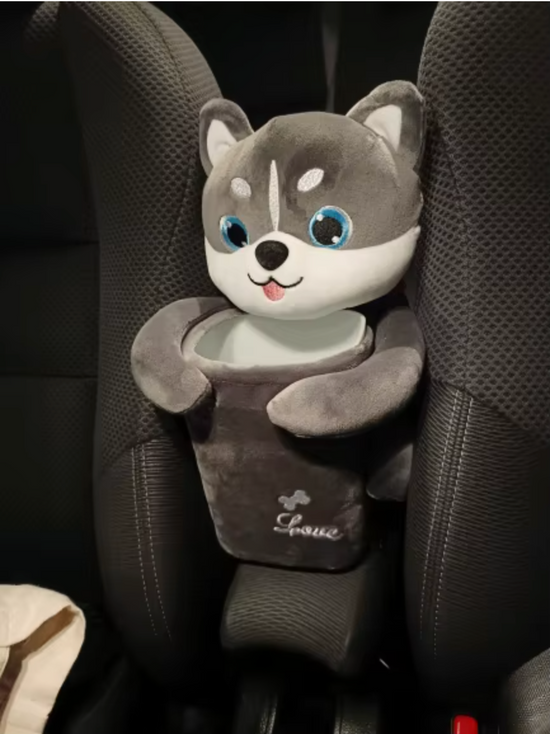 Adorabilă cutie de depozitare din pluș 2 în 1 pentru cotiera mașinii dvs.